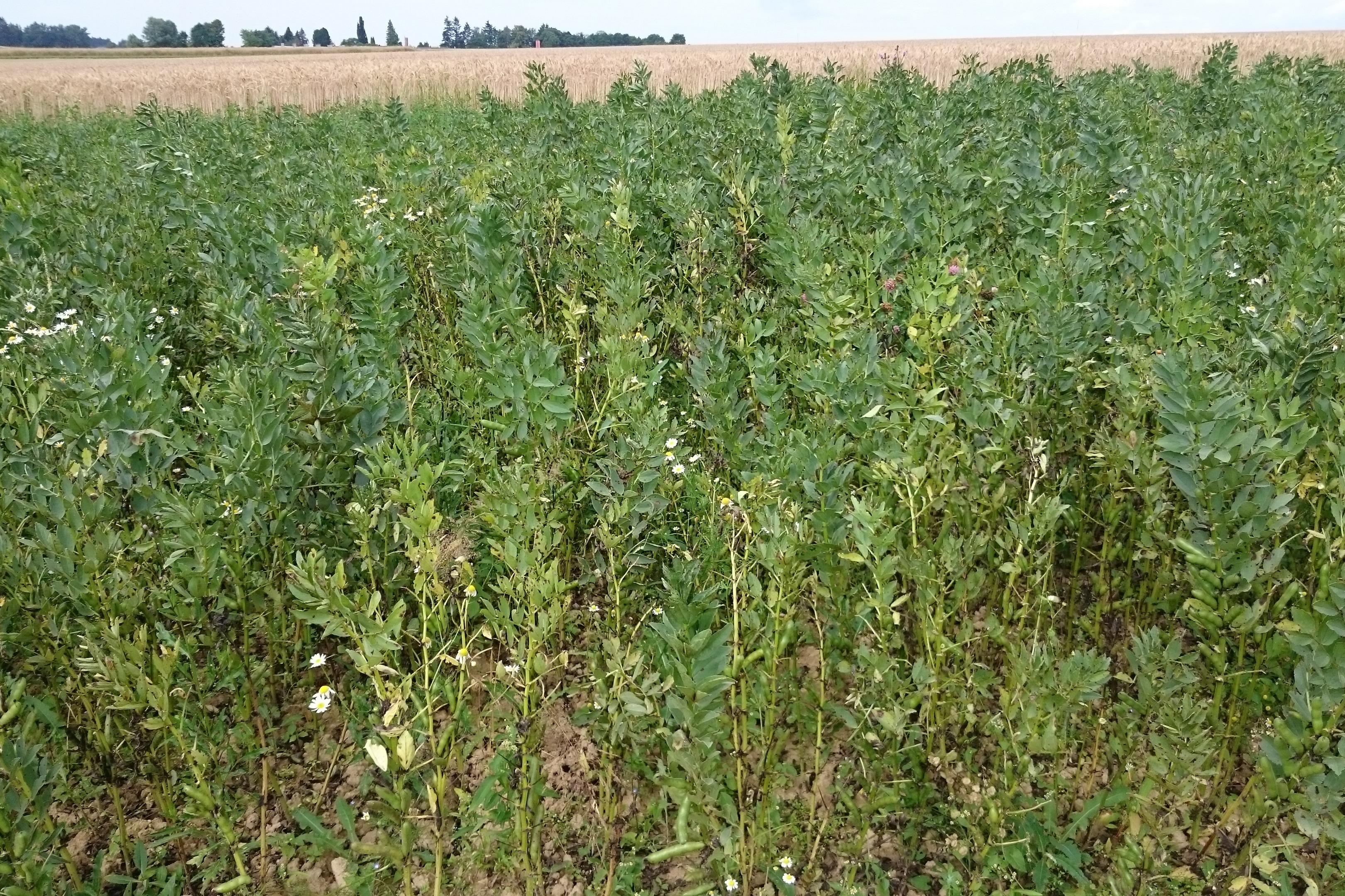 - Sortenwahl nach regionalen Empfehlungen: Vereinzelte Sorten zeigen eine größere Toleranz gegen Fußkrankheiten, so z. B. die Ackerbohnensorte Julia (Urbatzka et al. 2015). Bei den Erbsen gibt es von einigen Standorten Hinweise, dass bspw. die Sorten Gambit, Eso und Tip tendenziell eine höhere Widerstandsfähigkeit besitzen. Trotzdem muss auch hier der Abstand in der Fruchtfolge gewahrt werden! Eine Abhängigkeit der Widerstandsfähigkeit einer Sorte von ihrer Blühfarbe lässt sich bisher in verschiedenen Untersuchungen nicht eindeutig feststellen: buntblühende Erbsen sind nicht per se den Weißblühenden überlegen. Die bisher am Markt befindlichen tanninfreien Ackerbohnen sind in ihrer Resistenz gegen Krankheiten gegenüber den tanninhaltigen Sorten schwächer, jedoch ist darauf hinzuweisen, dass es sich nur um eine sehr geringe Anzahl an Sorten handelt.