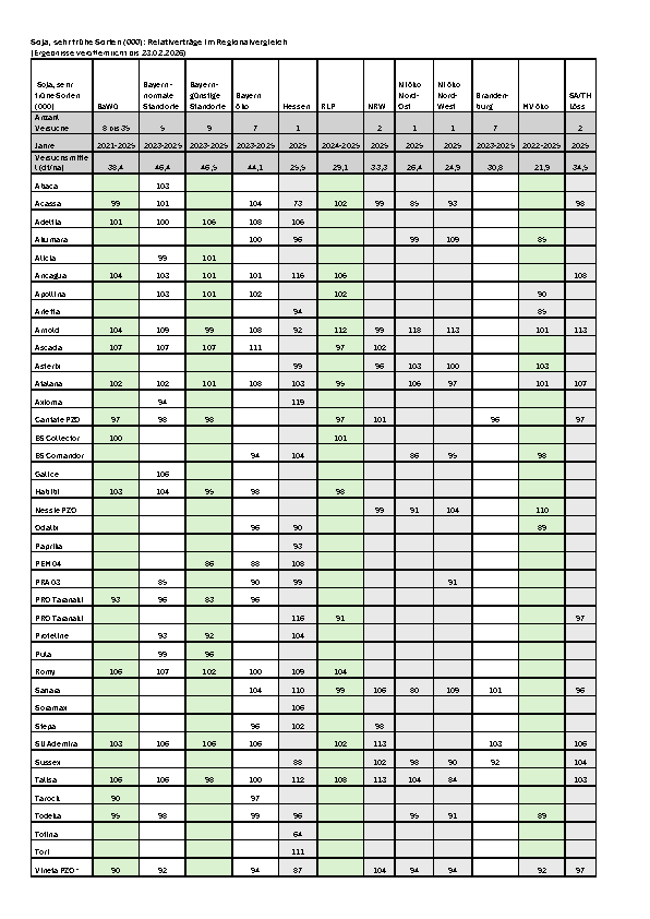 Bayern: Frühjahrsanbau 2026 – Sortenempfehlungen Sojabohne - Ökologischer Landbau in Bayern (lfl.bayern.de)