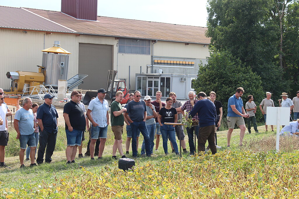 Auf dem LeguNet-Feldtag des Demonstrationsbetriebs Benedikt Sprenker in Beckum nahe Hamm in Westfalen drehte sich am 22. August 2024 alles rund um die Sojabohne. Expert*innen diskutierten mit den Teilnehmenden die komplette Soja-Wertschöpfungskette: vom Anbau bis zur Verwertung. Zum Bericht