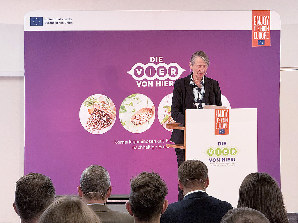 Am 26. November 2024 fand das dritte Pflanzenprotein Symposium der Union zur Förderung von Oel- und Proteinpflanzen e.V. (UFOP) im Rahmen der EU-kofinanzierten Kampagne "DIE VIER VON HIER! Europäische Körnerleguminosen für eine nachhaltige Ernährung" statt. Die Veranstaltung brachte Expertinnen und Experten aus Wissenschaft, Züchtung, Landwirtschaft, Politik und Lebensmittelproduktion sowie innovative Start-ups zusammen, um die Bedeutung von Körnerleguminosen für eine zukunftsfähige Ernährung und die Entwicklung regionaler Wertschöpfungsketten zu beleuchten. Das Symposium fand in Kooperation mit dem LeguNet statt.
